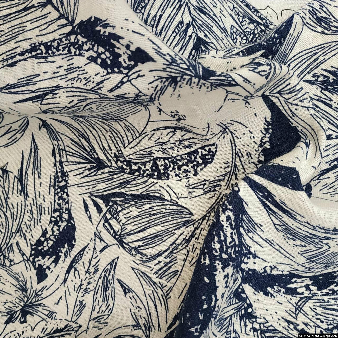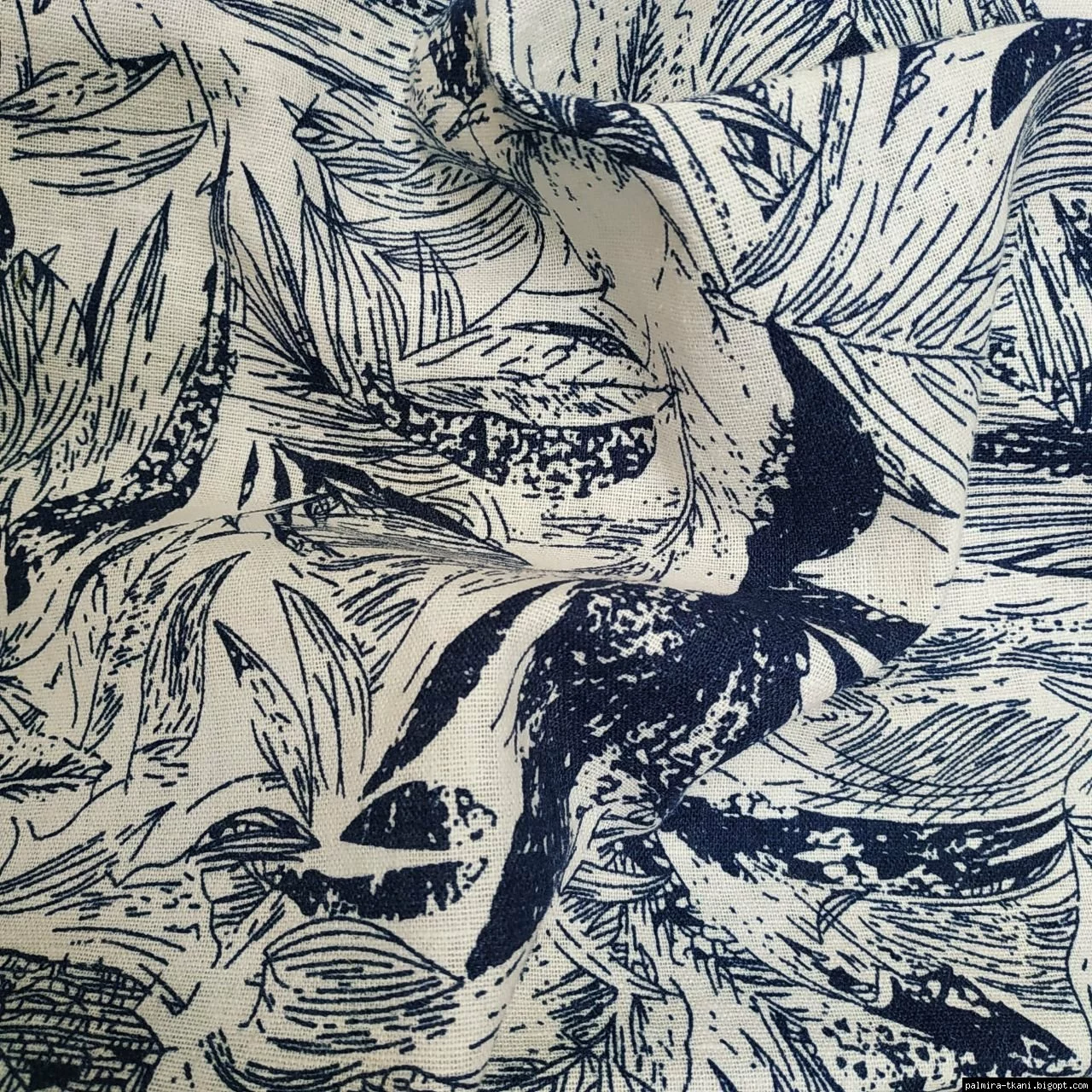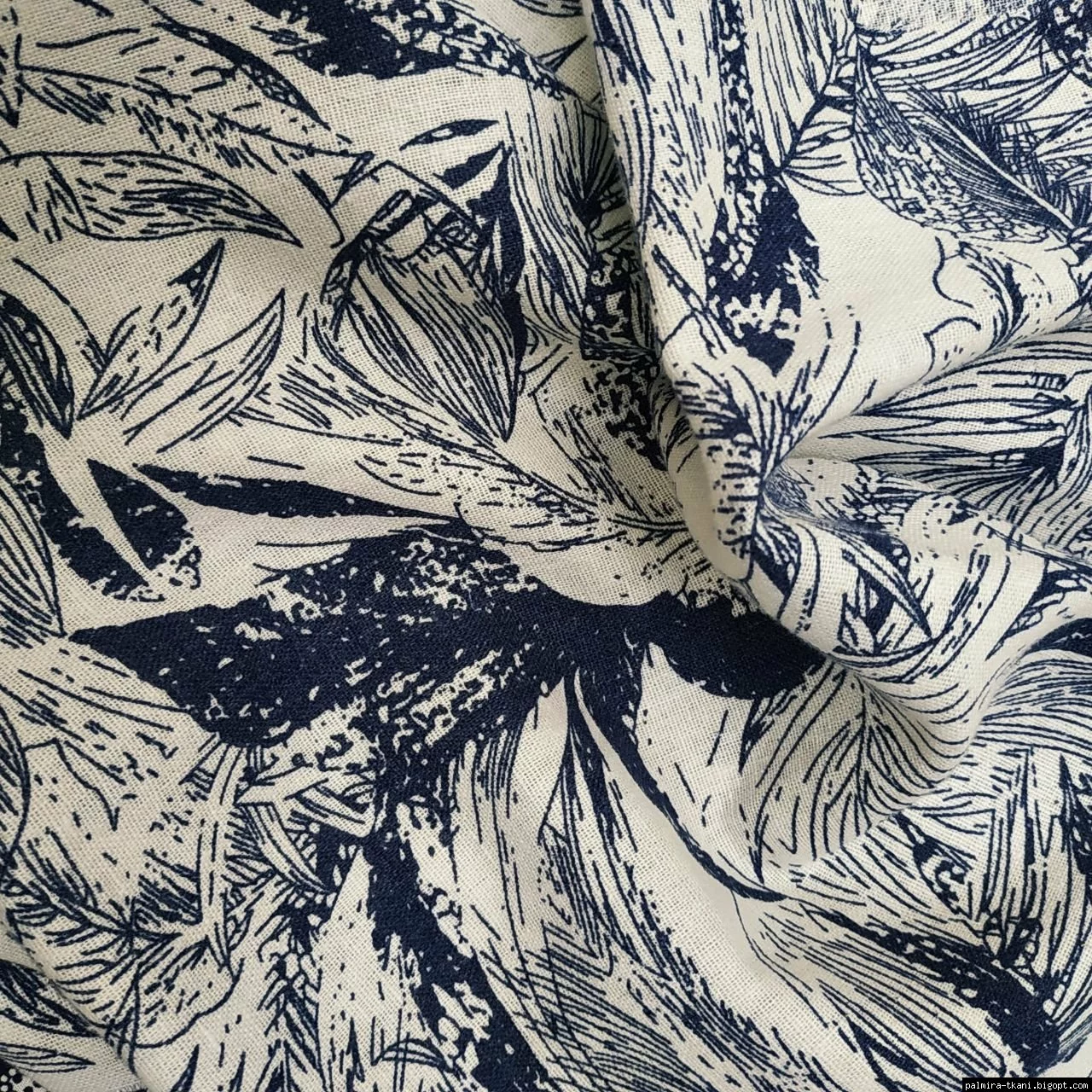 ▪Лен принт Цветы Синий