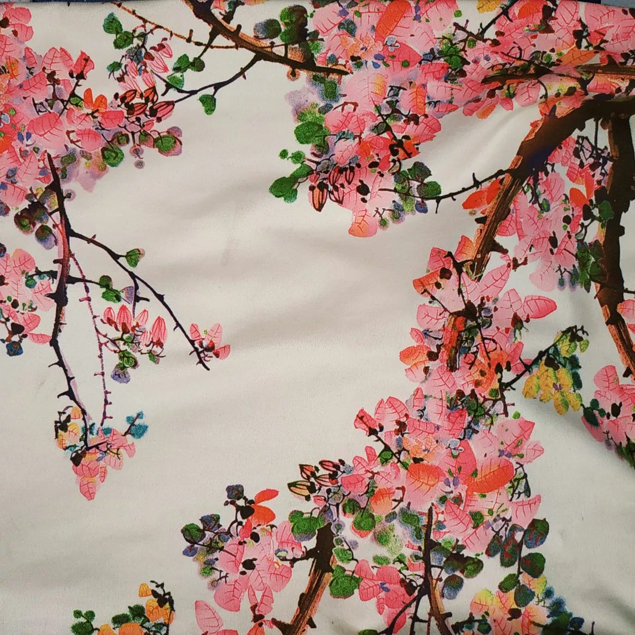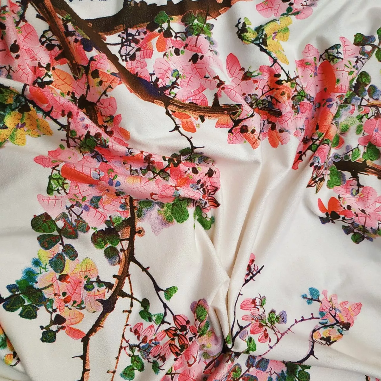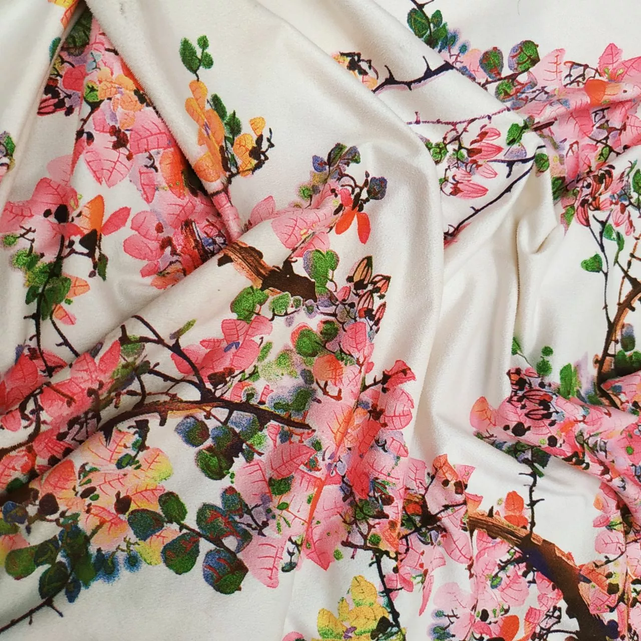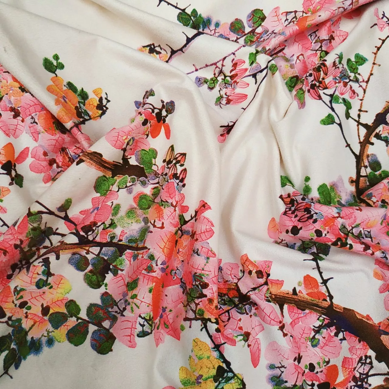 Замша принт Сакура белая